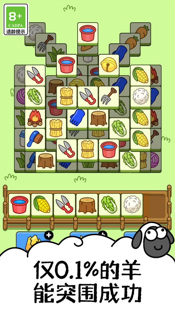 还记得被绵羊支配的恐惧吗?火遍全国的超人气正版消除游戏,它来了!认准这只羊,官方正版羊!游戏目前处于测试状态……原班人马倾力打造,原汁原味的游戏体验,让你羊羊羊到停不下来!【仅有0.1%的通关概率】你有没有体会过什么是首关上幼儿园,第二关直接考研?仅0.1%的羊可以突出重围,如果通关了建议直接写进求职简历!它一定不能盲目玩,开动脑筋,走首步的时候要提前想好第二步。成功=规划顺序+善用道具+999次尝试……【你的省队需要你】其他省的羊群队伍越来越壮大,而你又又又又又一次加入省队失败了?!能不能超过前面的省,就看这一把了!你的一小步,省队的一大步!【让人又爱又恨的规则】危!每个道具仅有一次使用机会,错过就要重新开始!每关只有一条命,失败就要重新开始!每日0点重置,所有人都要重新开始!肉鸽式的消除游戏,是时候展现真正的技术了!【你是不是世界上极聪明的羊】在极短时间内无道具通关的IQ奇才,将会获得“王者”的称号,并且在游戏非常显眼的位置展现你迷人帅气的“羊”姿,接受全国小羊们的崇拜——成为真正的领头羊!【不做孤独的美羊羊】羊圈里有什么羊?夫子羊、蛋糕羊、程序员羊、宇航员羊……奶奶说:一只狡猾的兔子要有3个洞窟,一只优雅的羊要拥有100个皮肤!